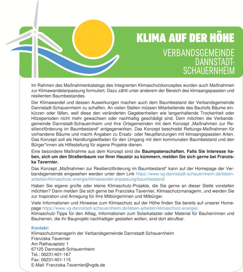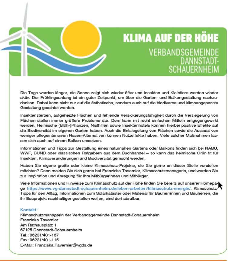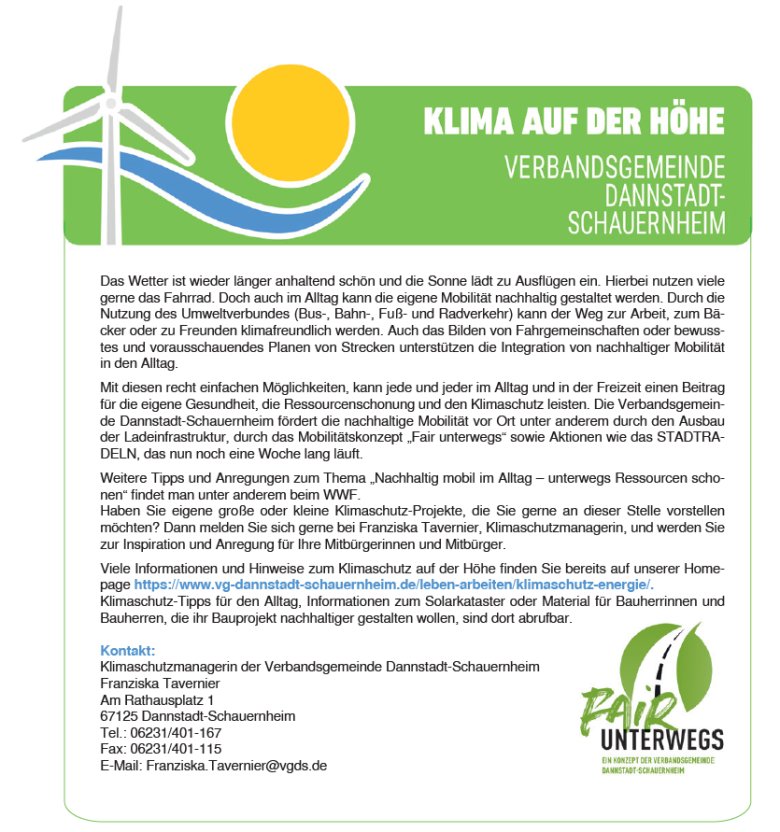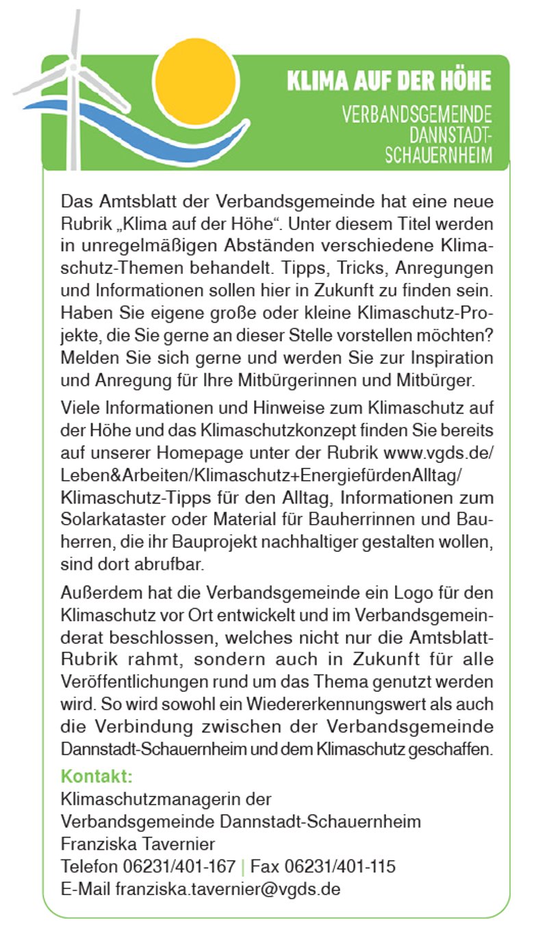 Klima auf der Höhe, Klimaschutz-Rubrik des Amtsblatts der Verbandsgemeinde Dannstadt-Schauernheim