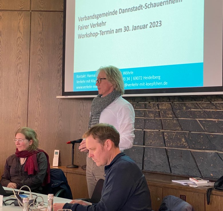 Die Verbandsgemeinde Dannstadt-Schauernheim möchte den Straßenverkehr innerhalb der Gemeindegrenzen fairer, sicherer und nachhaltiger gestalten. Bürgermeister Stefan Veth hat daher unter dem Motto „Fairer Verkehr“ zur Entwicklung eines Mobilitätskonzeptes Ende Januar Bürgerinnen und Bürger, Ratsmitglieder, die Ortsbürgermeister Manuela Winkelmann, Thomas Angel und Walter Schmitt sowie Verwaltungsmitarbeiter zu einem Leitungskreis in den Ratssaal der Verbandsgemeinde eingeladen. Das Heidelberger Verkehrsplanungsbüro „Verkehr mit Köpfchen“ begleitet das Projekt. In einem ersten Schritt haben Inhaberin Hannah Eberhardt und ihr Kollege Hannes Wöhrle im Vorfeld eine Befragung durchgeführt sowie die Straßen der Verbandsgemeinde zu Fuß, mit (Klapp-)Fahrrad, Ruftaxi und Öffentlichem Nahverkehr erkundet.