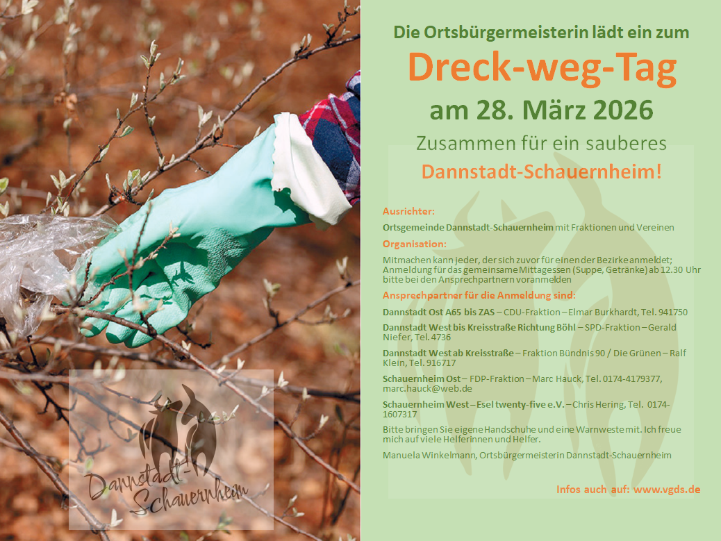Die Beigeordnete Marion Strese informiert, Anmeldungen bitte bis 15. 06. 2026 per E-Mail an marion.strese@vgds.de oder per Telefon unter 06231 / 401-163 (auf den Anrufbeantworter sprechen.)
