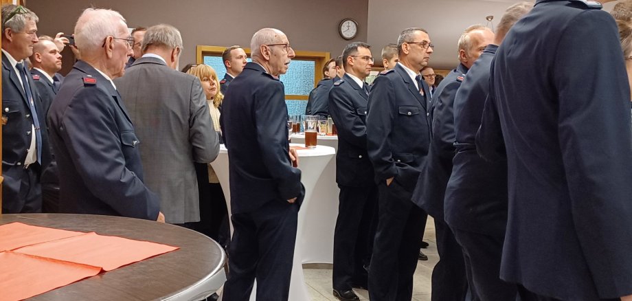Eine Stunde hatten die Gäste gewartet, bis die Feuerwehrkameraden aus ihrem Einsatz zurückkamen. Dann verfolgten alle gespannt die Ehrungen.