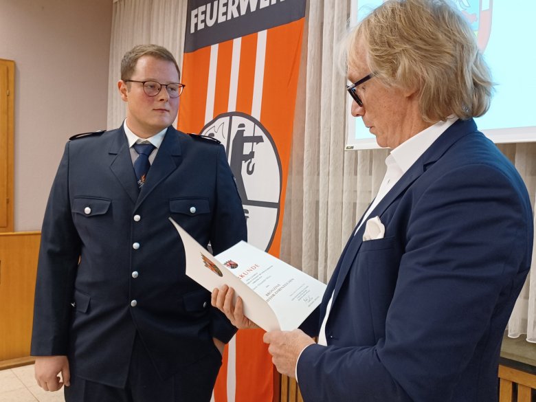Bürgermeister Stefan Veth lobte die gesamte Wehr der Verbandsgemeinde und insbesondere die örtlichen Wehren für ihr außerordentliches ehrenamtliches Engagement. „Angesichts der unsicheren Weltlage ist es gut, dass es Menschen gibt, auf die sich die Gesellschaft verlassen kann.“ Die Jugend verschmilzt mit dem Älterwerden in der Wehr, und wer schon lange dabei ist, bleibt in der Regel bis zum Ende der Dienstzeit, das zeigt die Erfahrung.
