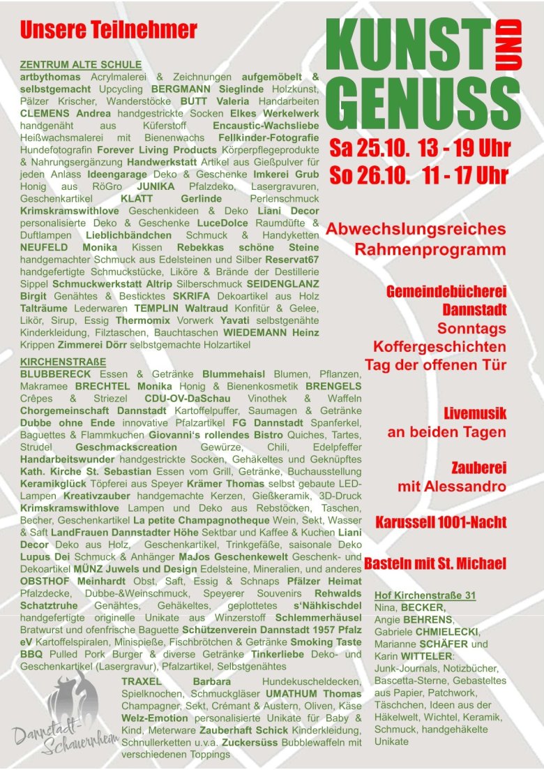 Für jeden etwas dabei: großes Angebot bei Kunst und Genuss am Samstag, 25.10., und Sonntag, 26.10.2025 mit abwechslungsreichem Rahmenprogramm.