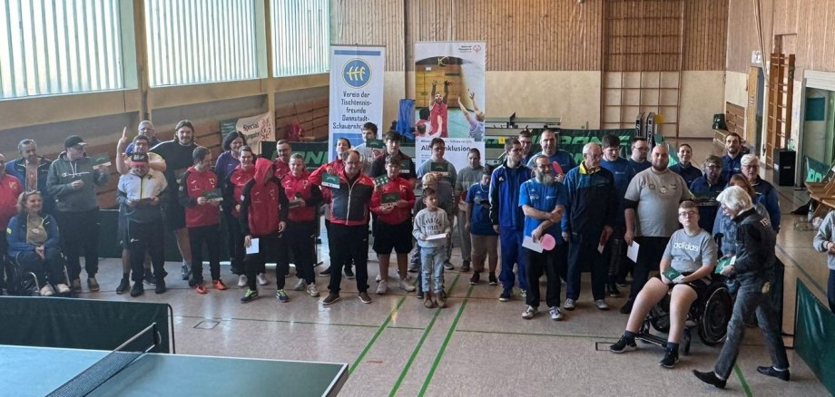 Das Ergebnis war eine gefüllte Tischtennishalle mit begeisterten Teilnehmern, die alle an den sechs Stationen die gestellten individuellen Anforderungen erfüllten. Auch unsere Ortsbürgermeisterin Manuela Winkelmann absolvierte alle Stationen mit Bravour. Neben ihr hatten die unterschiedlichsten Teilnehmer aus nah (Dannstadt, Mutterstadt) und fern (Rheinhessen und Südpfalz) viel Spaß an den Tischen. Es entstand ein lebendiger Austausch, der zeigte, wie selbstverständlich Inklusion im Sport gelingen kann.