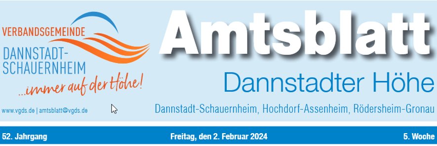 Das Amtsblatt Dannstadter Höhe erscheint wöchentlich und wird an alle Haushalte in der Verbandsgemeinde Dannstadt-Schauernheim verteilt.